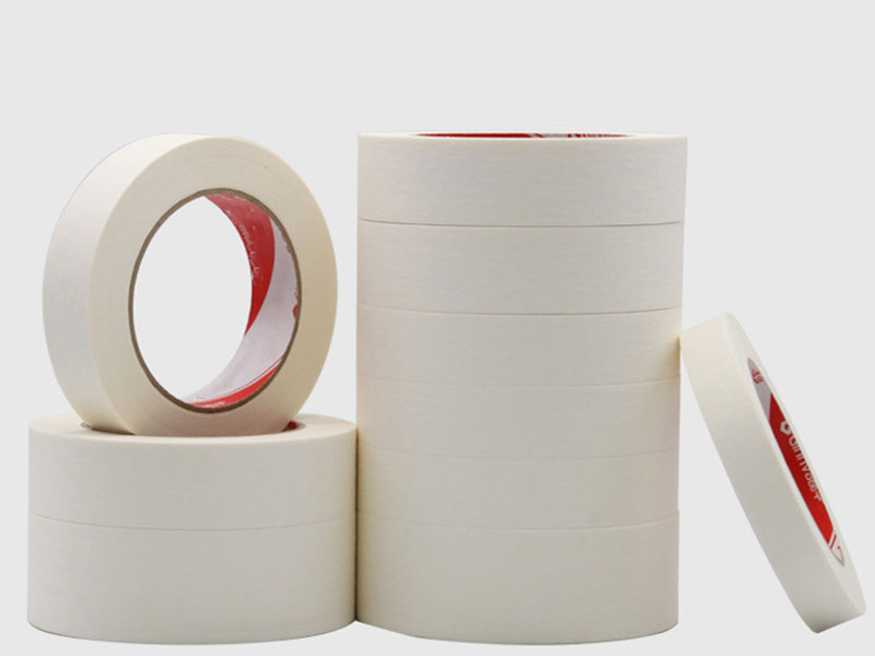 以皱纹纸和橡胶系压敏胶为主要原料,根据用途的不同覆涂以橡胶、水胶等胶粘剂,另一面涂以防粘材料而制成的卷状胶粘带。涂胶面平整,粘性佳并具有良好耐候、贴附、再剥离无残胶等特性。对粘贴面有良好的遮盖和保护。